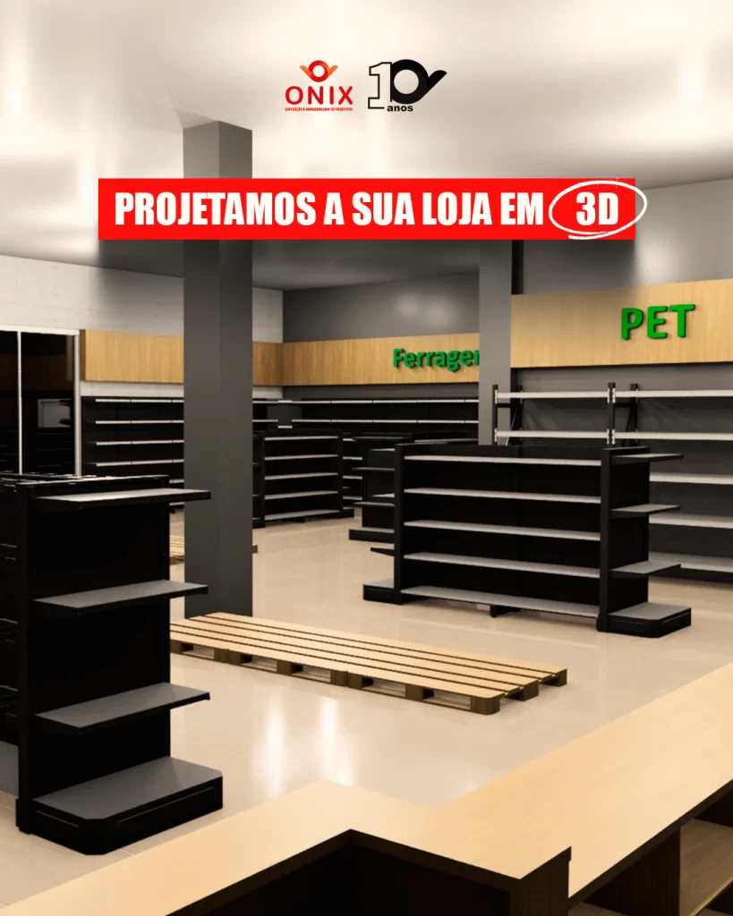 Faça seu projeto com a gente! Você deseja projetar sua loja mas não consegue imaginar como vai ficar? A Onix te ajuda! Nós projetamos sua loja em 3D para uma melhor visualização do seu projeto e disposição dos produtos! Entre em contato conosco e saiba mais!